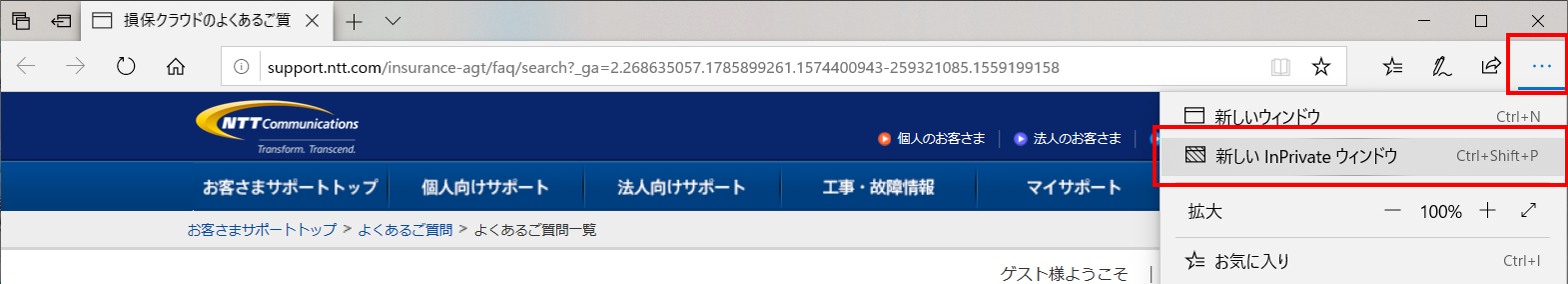 Step2 Microsoft Edgeでインプライベートウィンドウで表示する