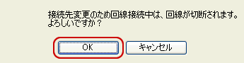 設定したOCN接続用IDとOCN接続用パスワードに誤りがある可能性があります。2回目以降の設定の場合 を参照し、[接続先設定]画面から、再度設定を行ってください。